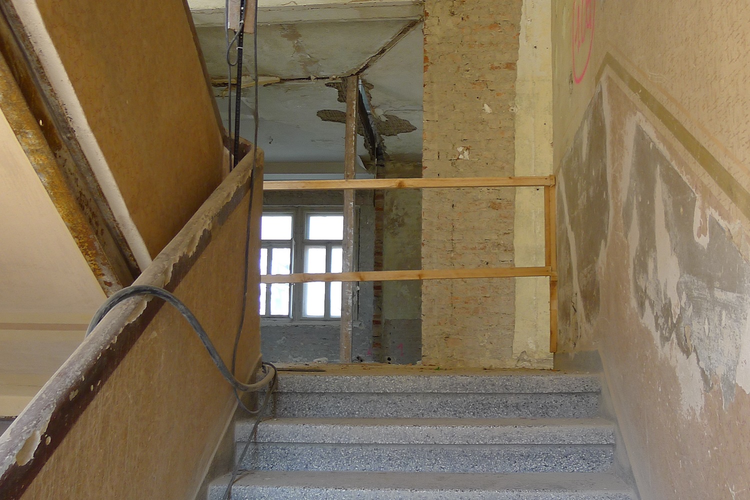 Die Ruhe vor dem Sturm! Lange war es in der Heinrich-Schütz-Straße 16 in Chemnitz ruhig. Die einzigen Geräusche kamen aus dem gegenüberliegenden Stadion. Doch jetzt haben die Bauarbeiten begonnen und die Ruhe hat ein Ende. Der Voreigentümer hatte bereits mit den vorbereitenden Maßnahmen für eine spätere Sanierung angefangen. So sind die Entkernungsarbeiten teilweise erfolgt. Es wird sehr großen Wert auf den Erhalt der alten Bausubstanz gelegt, sodass diese zunächst gesichert werden muss um anschließend mit den Abbrucharbeiten für die Realisierung der modernen Grundrisse beginnen zu können.