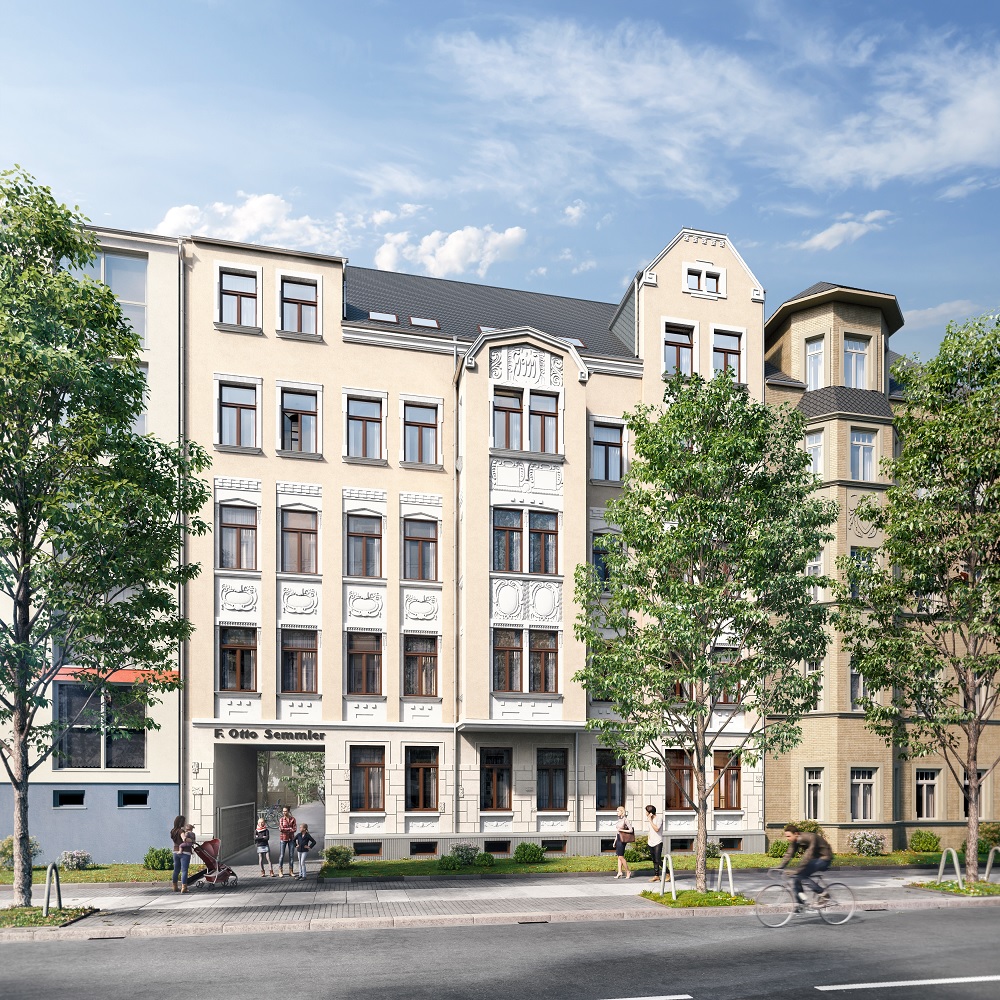 Das in der Gründerzeit erbaute Mehrfamilienhaus in der Heinrich-Schütz-Straße 16 steht unter Denkmalschutz und beeindruckt insbesondere durch seinen Fassadenschmuck mit aufwendig gestalteten Stuckornamenten. Nach der umfassenden Kernsanierung bietet das Objekt neun moderne sowie komfortable Wohneinheiten mit einer Größe von ca. 72,25 m² bis ca. 124,50 m².
