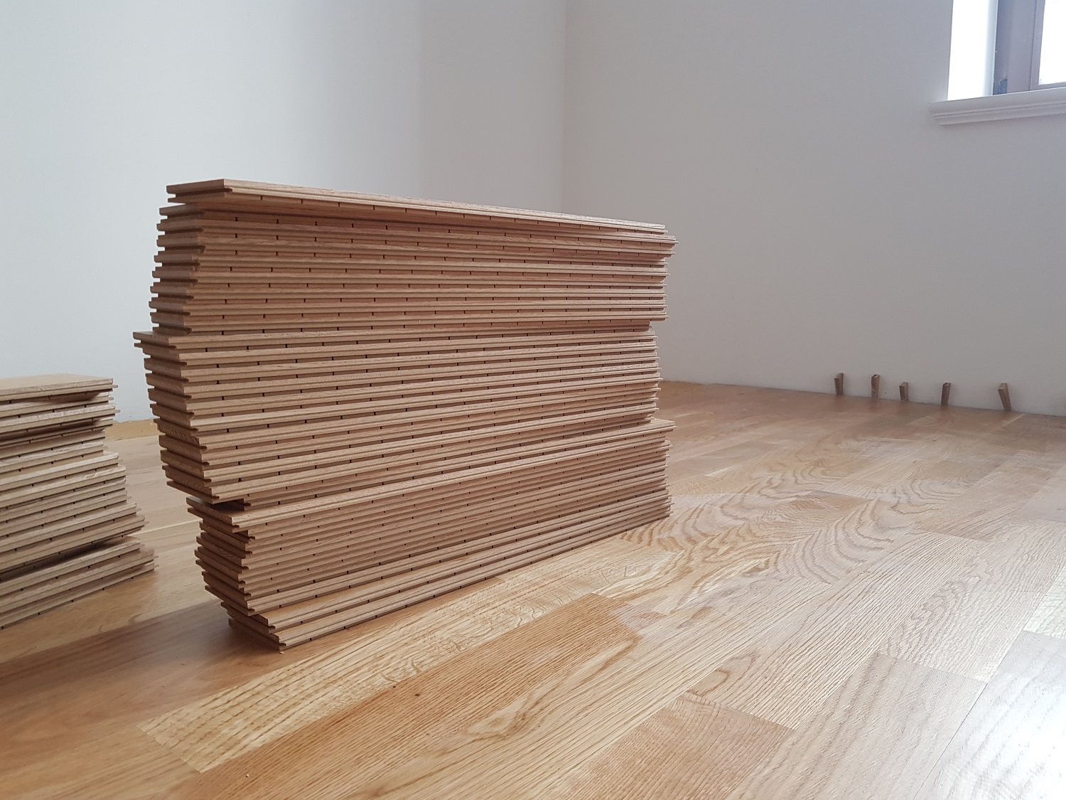 - die Wohn- und Schlafräume werden mit hochwertigen versiegelten Einzelstabmehrschicht-Fertigparkett aus Eichenholz in Schiffsbodenverlegeart belegt