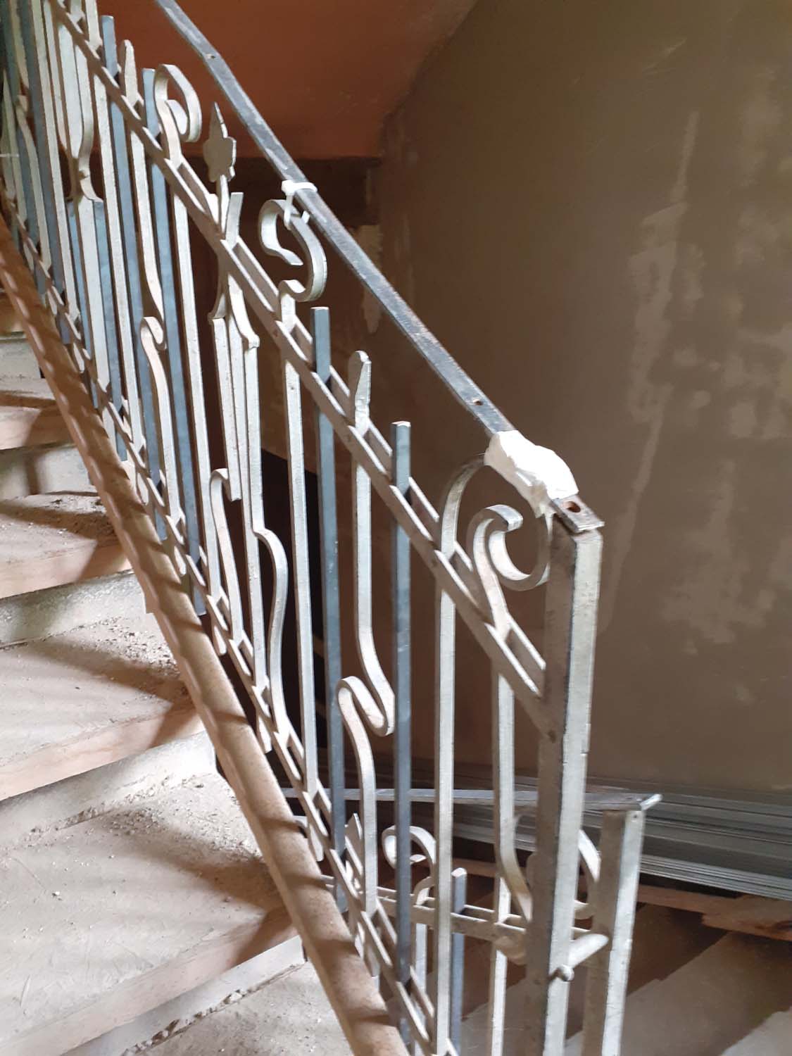 Die Arbeiten in den Wohnungen sind in den letzten Zügen. Hier müssen nur noch zum Teil noch die Sockelleisten montiert und die Endreinigung durchgeführt werden. Der Fokus der Arbeiten liegt nun auf der Fertigstellung der Leistungen im Gemeinschaftseigentum. So sind aktuell die die Handwerker im Treppenhaus mit der Aufarbeitung des historischen Treppengeländers beschäftigt.