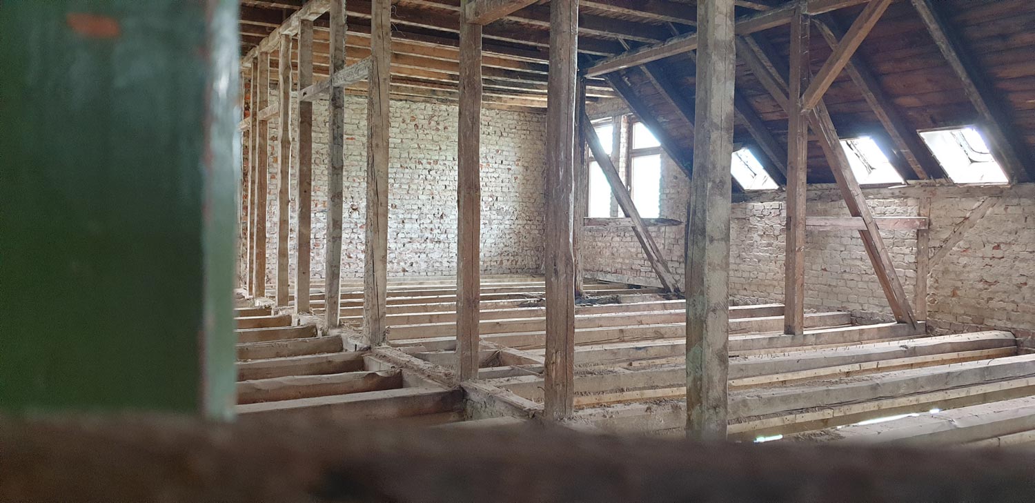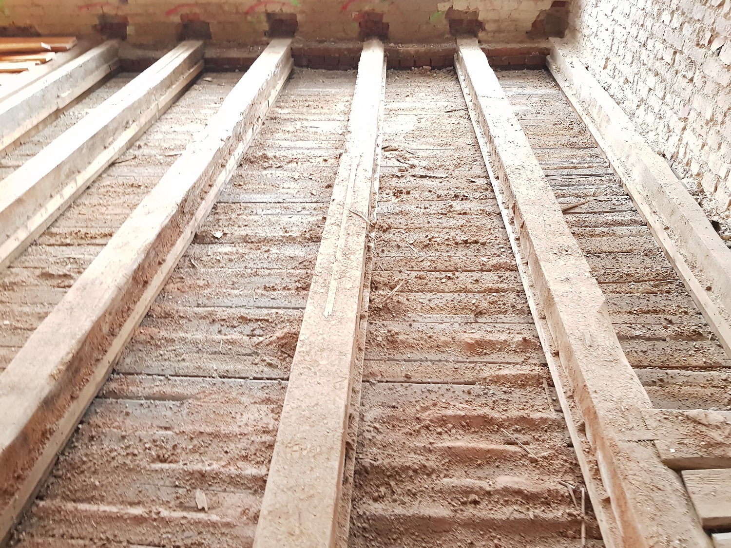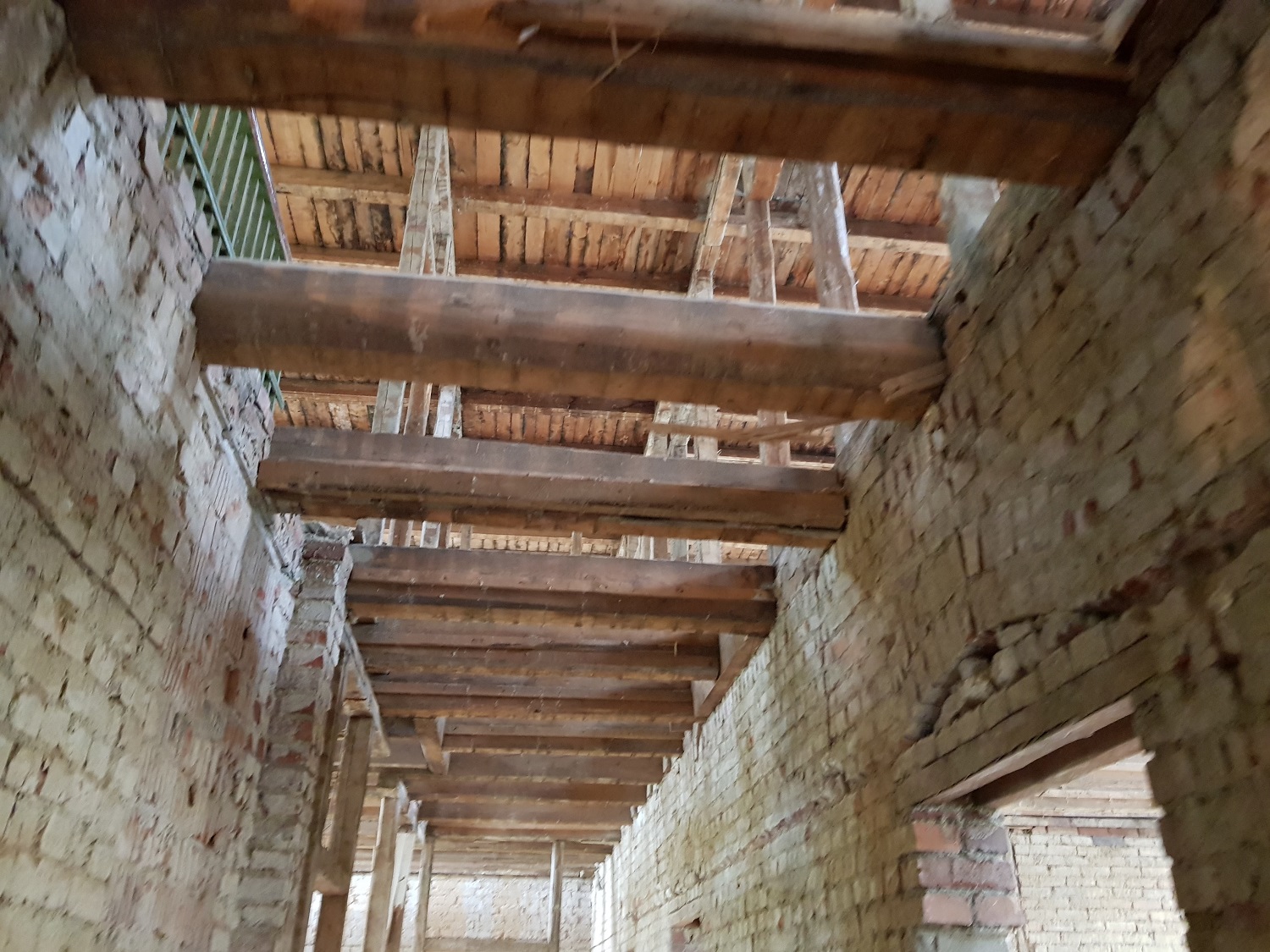 Nach einer Bauunterbrechung, welche aufgrund von Straßenbauarbeiten (direkt vor dem Objekt) eingetreten ist, können die Arbeiten am Objekt nun wieder in voller Kraft ausgeführt werden. Nachdem die ersten Decken freigelegt wurden, werden diese nun in Abstimmung mit dem Holzschutzgutachter saniert.