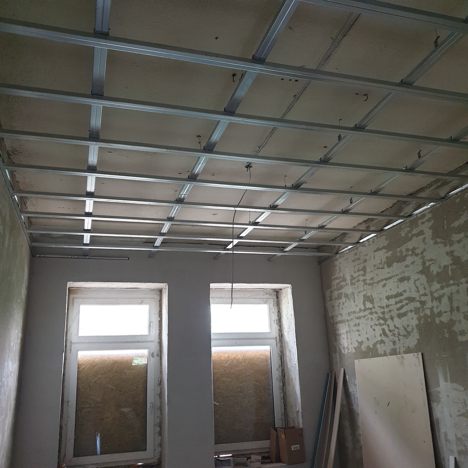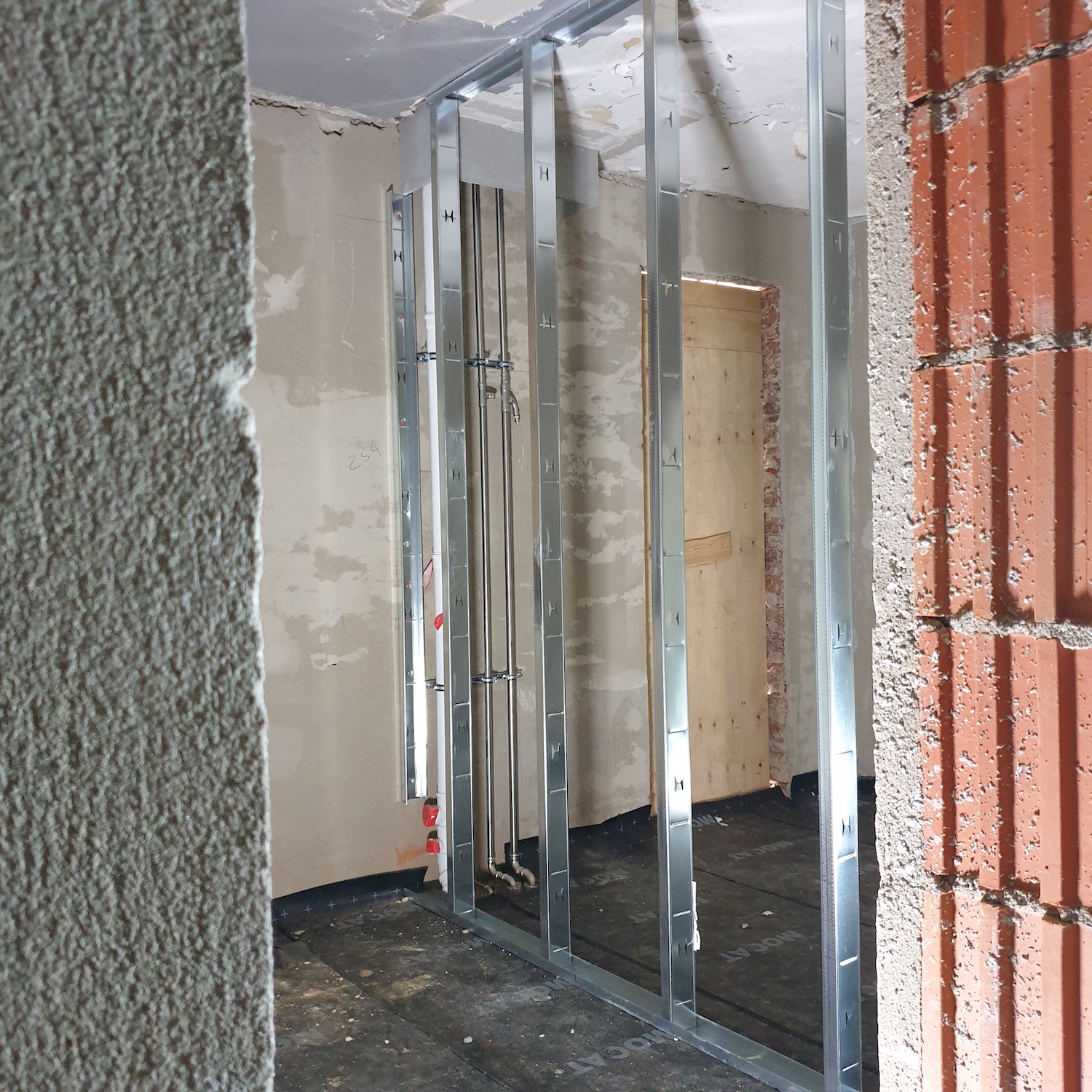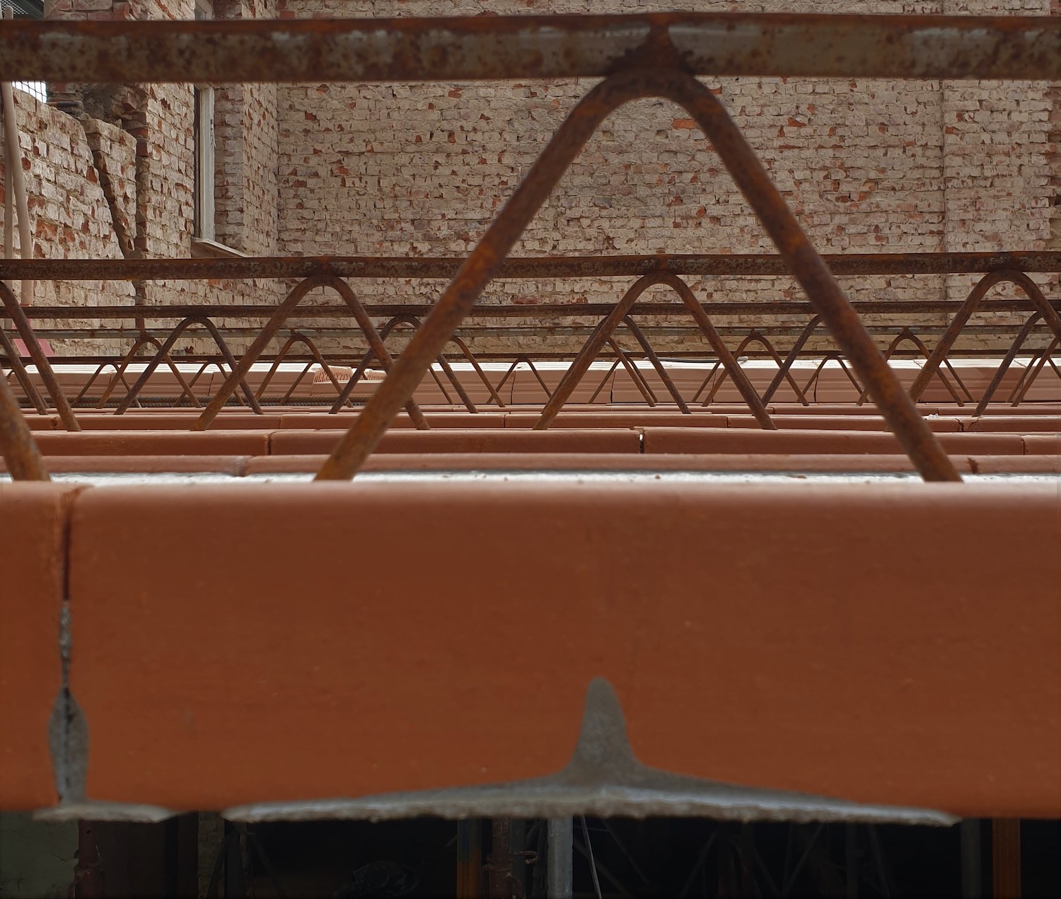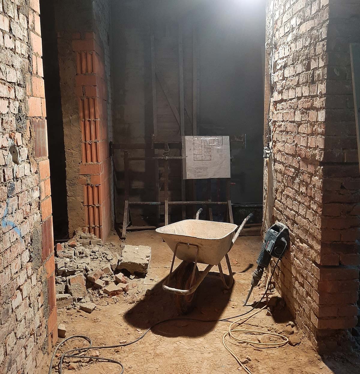Nachdem in den letzten Monaten einige Wände neu gemauert wurden, können nun die irreparablen Holzbalkendecken durch neue Ziegeldecken ersetzt werden. Zudem haben auch die Trockenbauer begonnen, erste Trockenbauwandprofile zu erstellen, wonach dann auch die Installationen der Elektriker und HLS-Monteure beginnen werden.