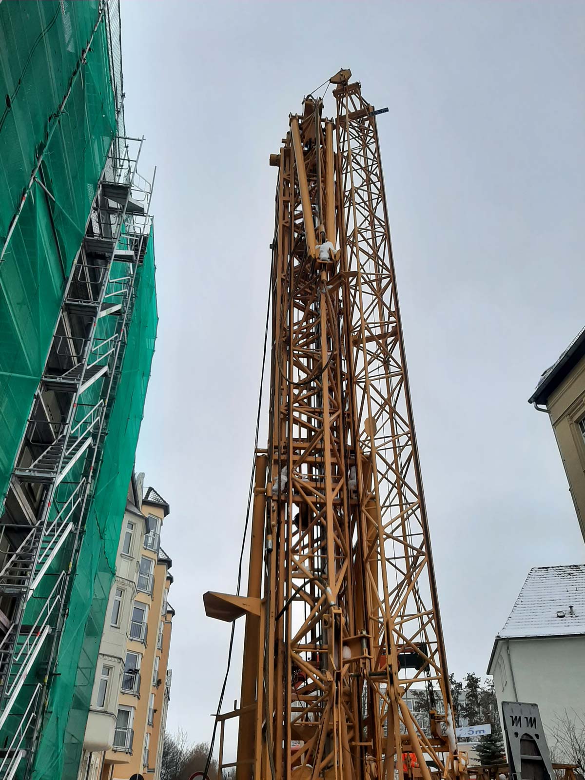 Die neuen Fenster und Balkontüren wurden auf die Baustelle geliefert und werden nun sukzessive montiert. In den Regelgeschossen sind die ersten Trockenbauarbeiten abgeschlossen, so dass nun die Gewerke der TGA dort tätig sein können. Auch die Rohbaufertigstellung in den oberen Geschossen nebst der Fertigstellung des Dachstuhls rückt nun in greifbare Nähe.