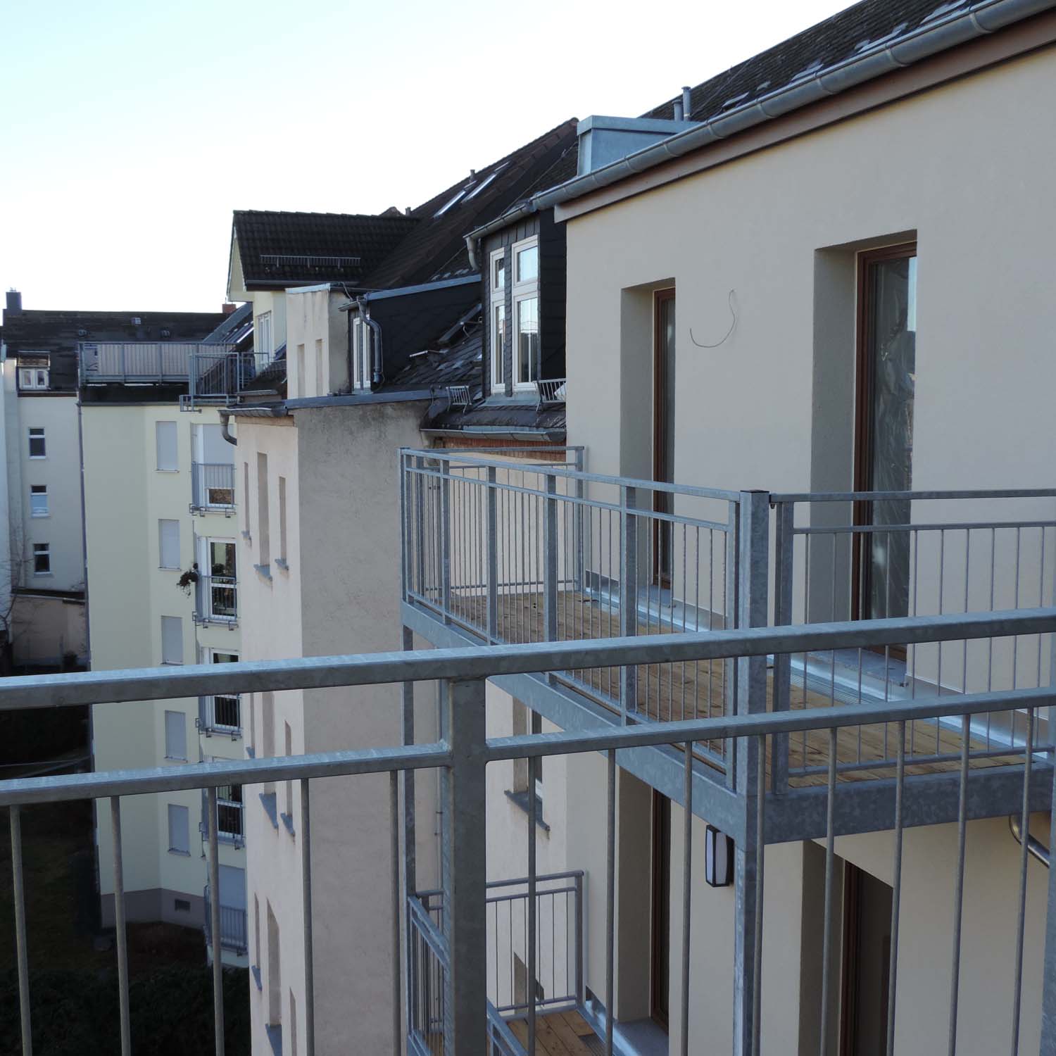 Kurz vor Weihnachten erstrahlen überall die Lichter der Weihnachtsdekoration – in der Stadlerstraße erstrahlt die Fassade in neuem Glanz. Die Balkone an der Gebäudeecke wurden nach historischem Vorbild neu errichtet. Im Gebäudeinneren ist der Endspurt eingeläutet; die ersten Wohnungen sind fertiggestellt und auch in den übrigen Wohnungen werden bereits die Innentüren und Wohnungseingangstüren nach und nach montiert. Zudem stehen inzwischen auch die hofseitigen Balkonanlagen und die Außenanlagenarbeiten konnten bereits begonnen werden.