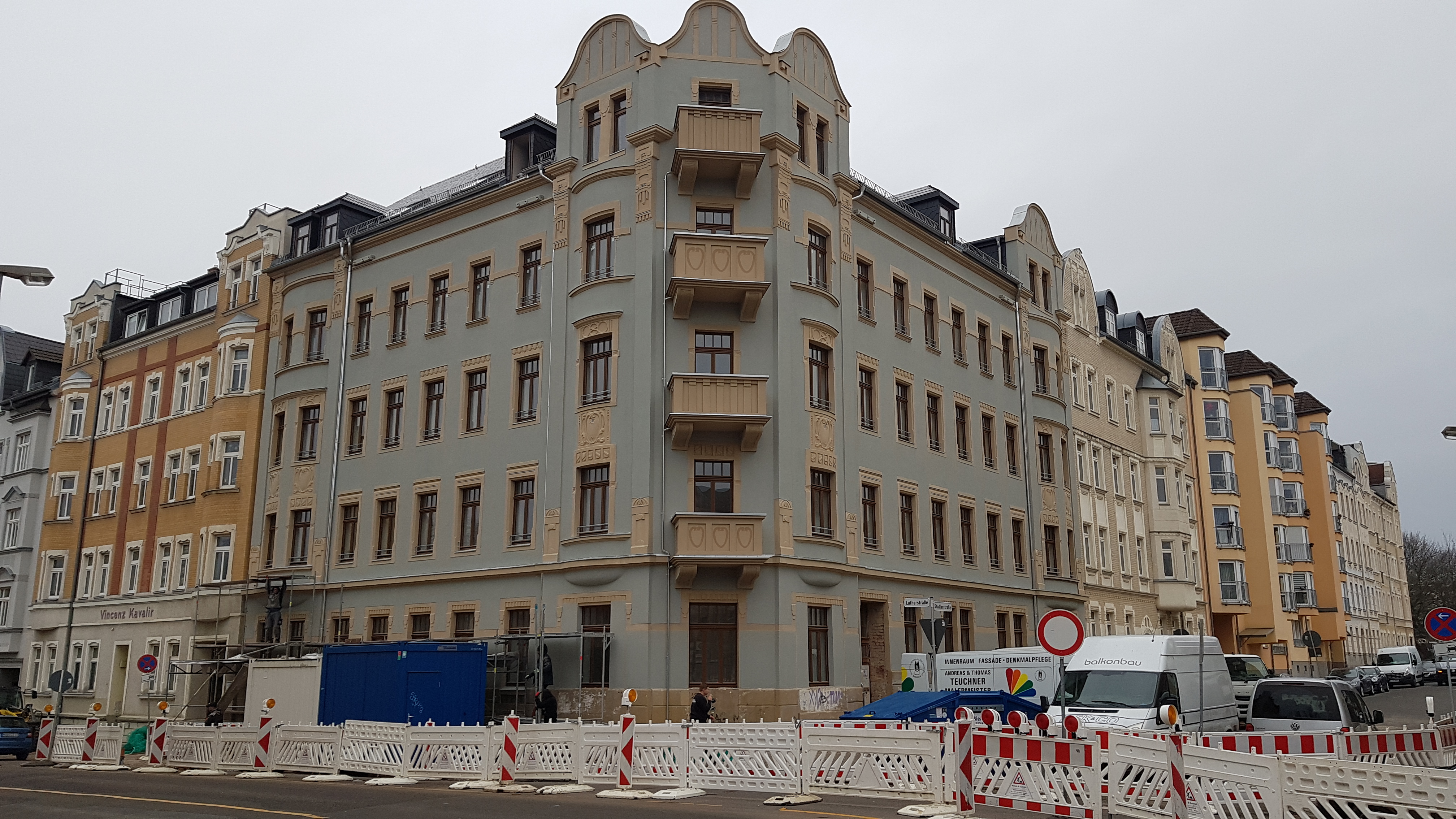 Das denkmalgeschützte Gebäude ist ein klassisches Chemnitzer Gründerzeitmehrfamilienhaus aus der Zeit von ca. 1910.