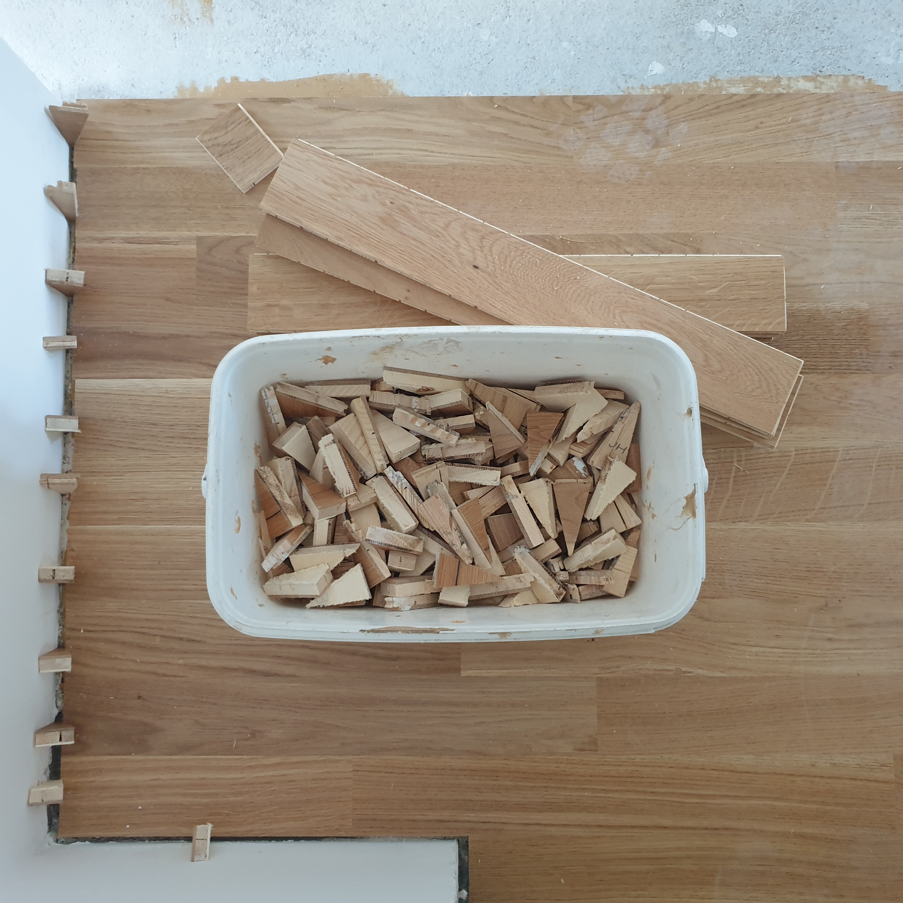 - die Wohn- und Schlafräume werden mit hochwertig versiegeltem Einzelstabmehrschicht-Fertigparkett aus Eichenholz in Schiffsbodenverlegeart belegt