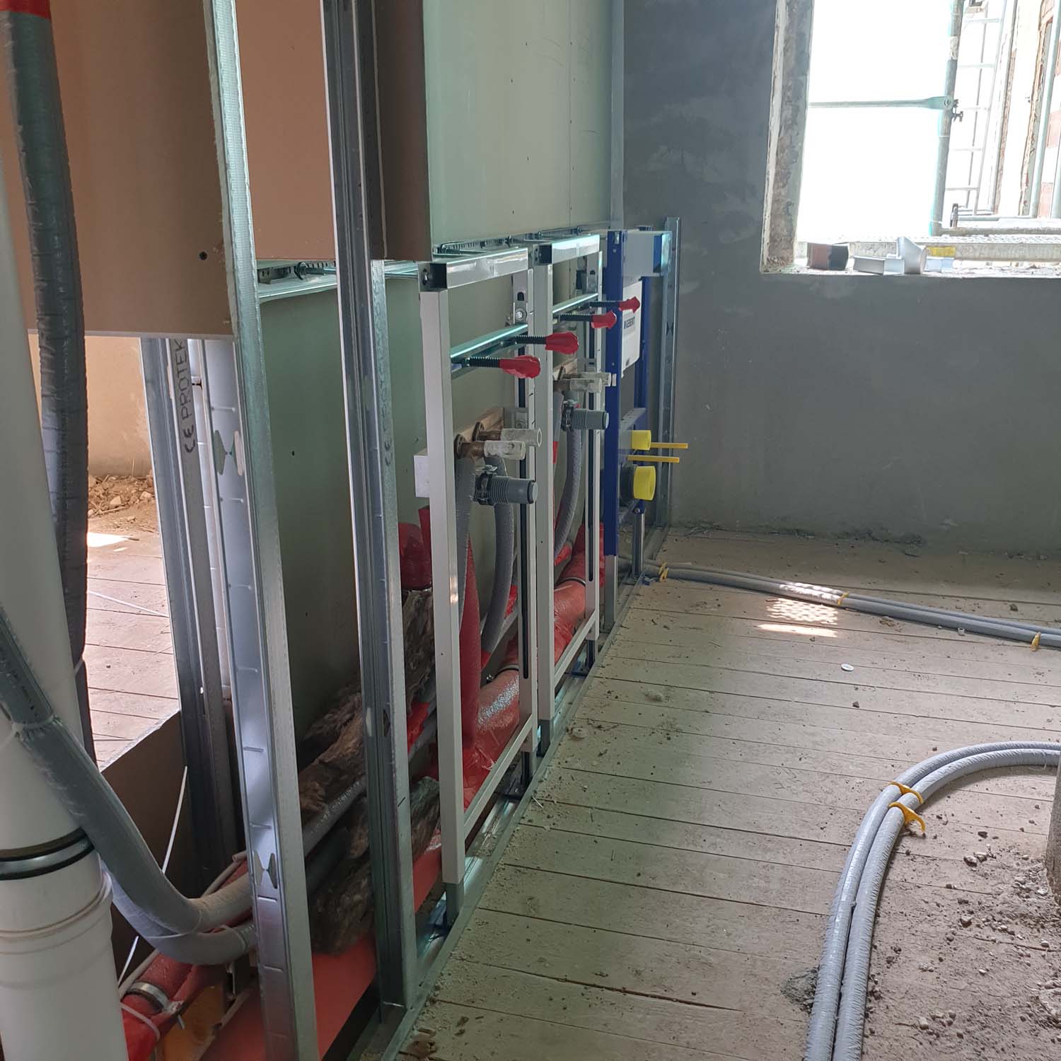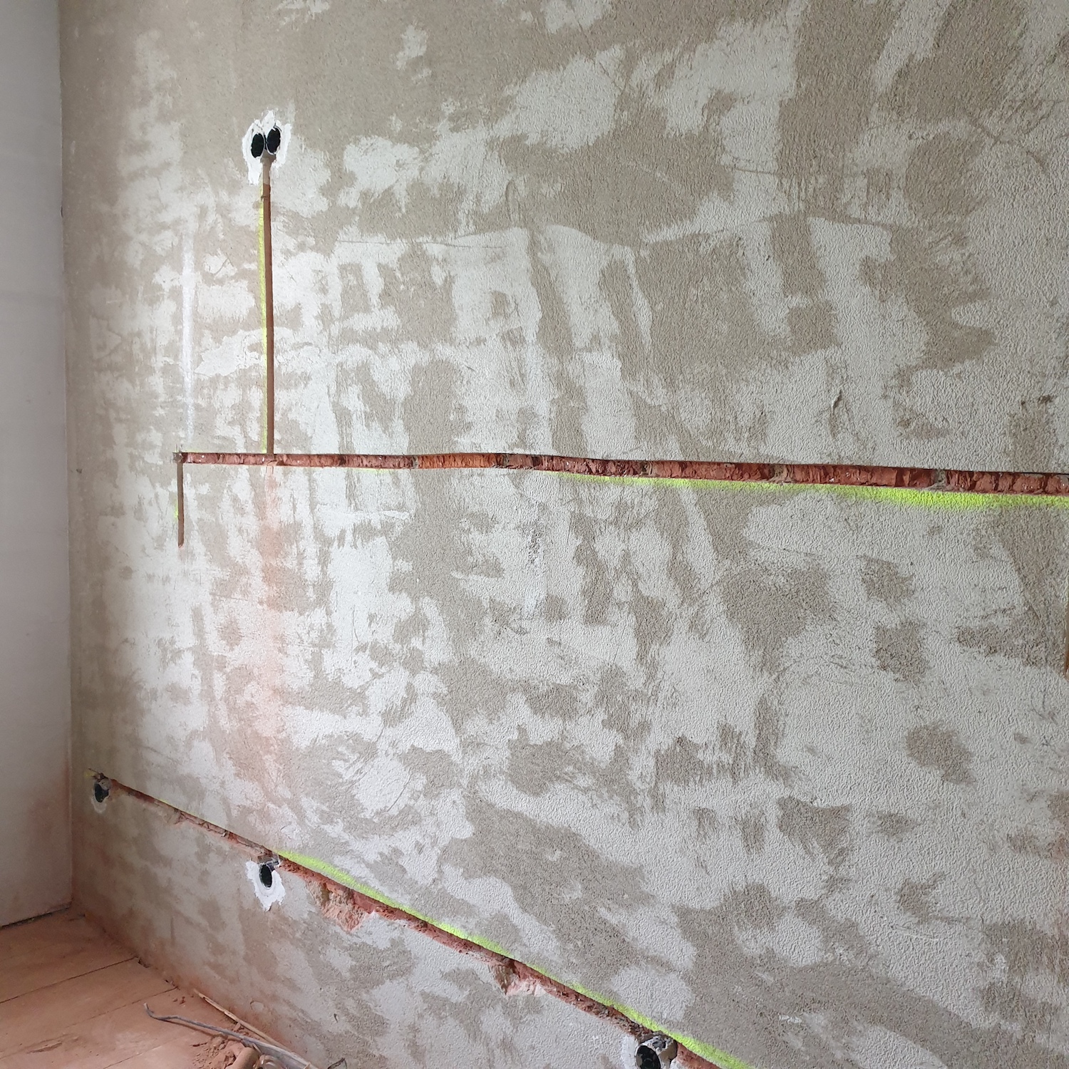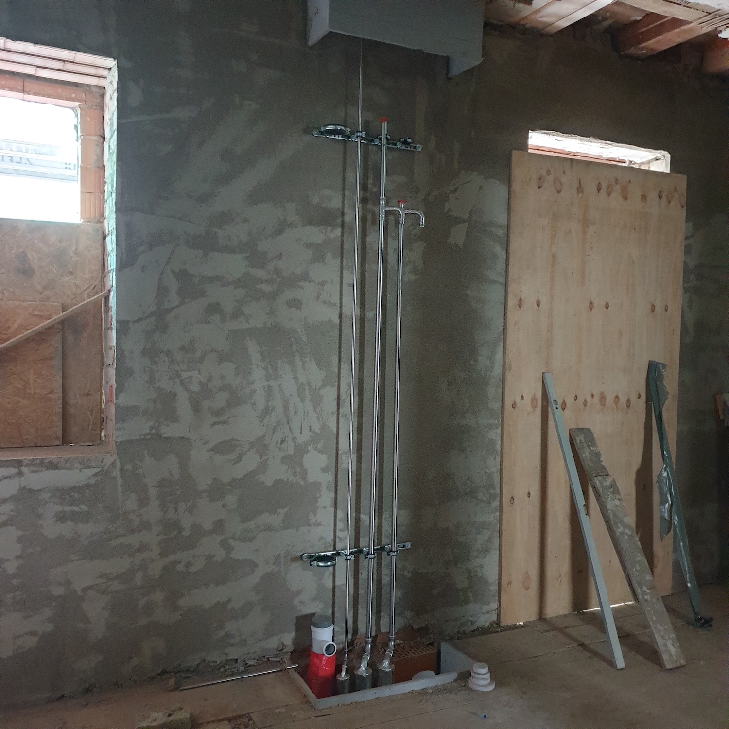 Auf der Baustelle sind die Arbeiten im Kellergeschoss bis auf die Stellung der einzelnen Kellertrennwände beendet. Im Erdgeschoss bis zum 2.Obergeschoss haben die Klempner und Elektriker ihre Rohinstallationsarbeiten abgeschlossen, sodass sie nun im 3. Obergeschoss weiterarbeiten. Auch der Estrich ist bereits in den ersten Etagen verlegt worden.