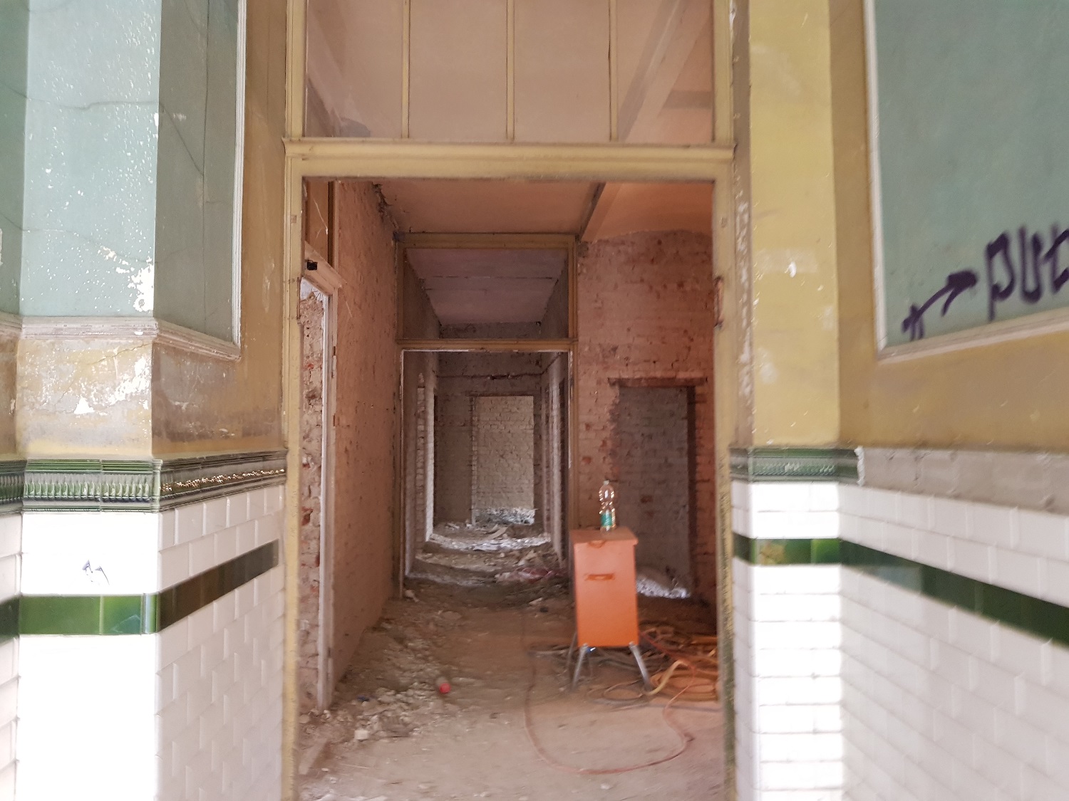 Im schönen Altbau-Eckhaus schreiten die Arbeiten weiter voran. Der Personenaufzug wurde im Oktober eingebaut und so konnte man während dieser Zeit der Montage einmal Einblicke „hinter die Kulissen“ bekommen. Im Erdgeschoss sind die Fliesenarbeiten bereits abgeschlossen, sodass die Küchen, Flure und Bäder schon wohnlich wirken. Sämtliche Ausbauarbeiten werden nun in den darüberliegenden Stockwerken fortgesetzt. Auch im Dachgeschoss gehen die Arbeiten weiter zügig voran, so dass in Kürze auch dort die letzten Leichtmetallständerwände errichtet werden können.