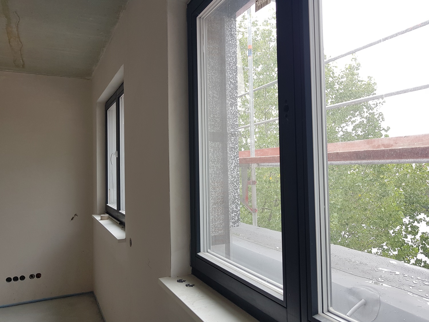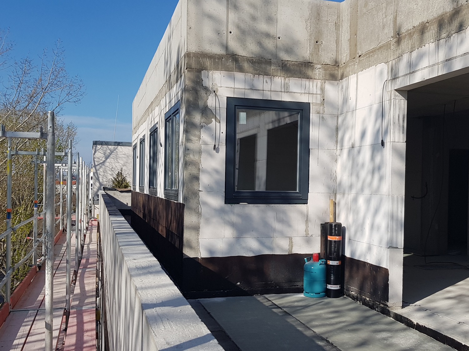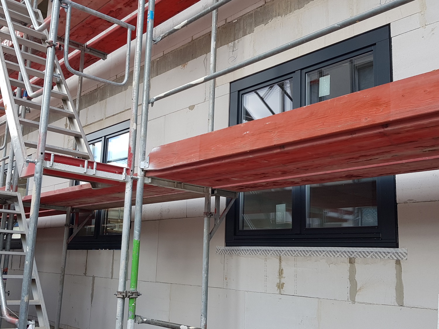 Die Rohbauarbeiten sind abgeschlossen, somit zeigen bereits die großflächigen Fenster, dass sie für helle und freundliche Wohneinheiten sorgen. Die Verglasung der Fensterelemente wurde als Dreifachverglasung gewählt und gewährleistet somit einen sehr guten Wärme- als auch Schallschutz. In den nächsten Schritten wird die Gebäudehülle somit komplett geschlossen. Im Inneren des Objektes laufen die Rohinstallationsarbeiten der technischen Gewerke auf Hochtouren.
