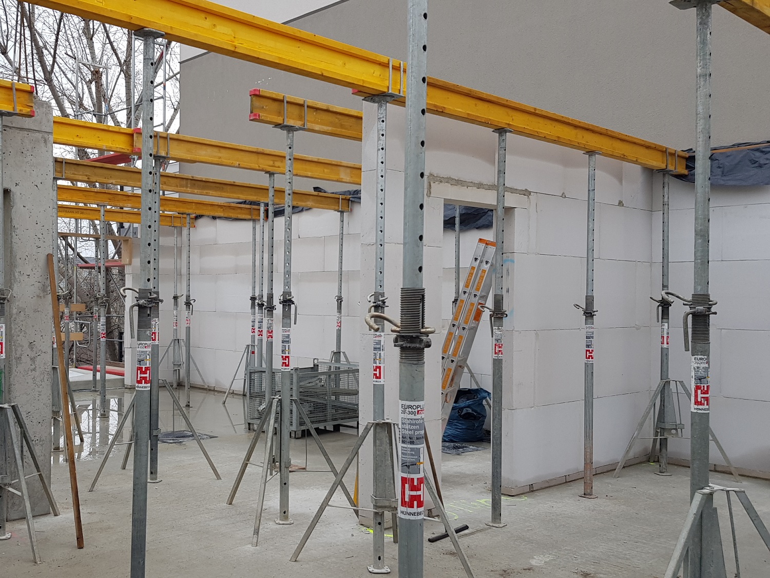 Nachdem die Kellerwände fertiggestellt sind erfolgt nun die Betonage der Kellerdecke. Die Geschossdecken werden gemäß den bauphysikalischen Anforderungen und nach den statischen Berechnungen hergestellt.