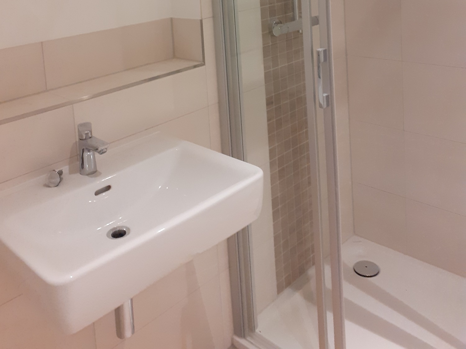 Nun geht es an den Feinschliff, es werden u. a. die letzten Mischgarnituren angebracht, in den Bädern und Duschbädern werden serienmäßig großflächig beleuchtete Spiegel montiert und in sämtlichen Räumen erfolgt die Endmontage der Elektroinstallationen. Bevor in wenigen Tagen die Feinreinigung beginnen kann, haben die Handwerker noch alle Hände voll zu tun!